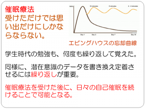 催眠療法中に潜在意識の中のマイナスのデータを打ち消すプラスのデータを入れても、どんどん忘れていきます。